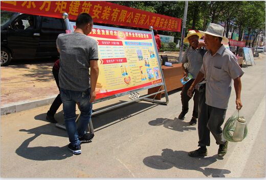 為推動我公司第十九個(gè)“安全月”活動深入開展,我公司同大安鎮(zhèn)安監(jiān)站在大安鎮(zhèn)駐地舉行了“安全月”活動,緊緊圍繞“強(qiáng)化安全發(fā)展觀念,提升全民安全素質(zhì)”為主題,精心組織,周密部署,將安全生產(chǎn)教育主場放在生產(chǎn)一線,開展了系列安全生產(chǎn)教育主題活動,加大安全生產(chǎn)宣傳教育力度。